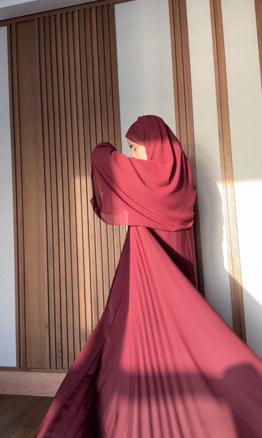 Maroon flow Abayah with attached hijab